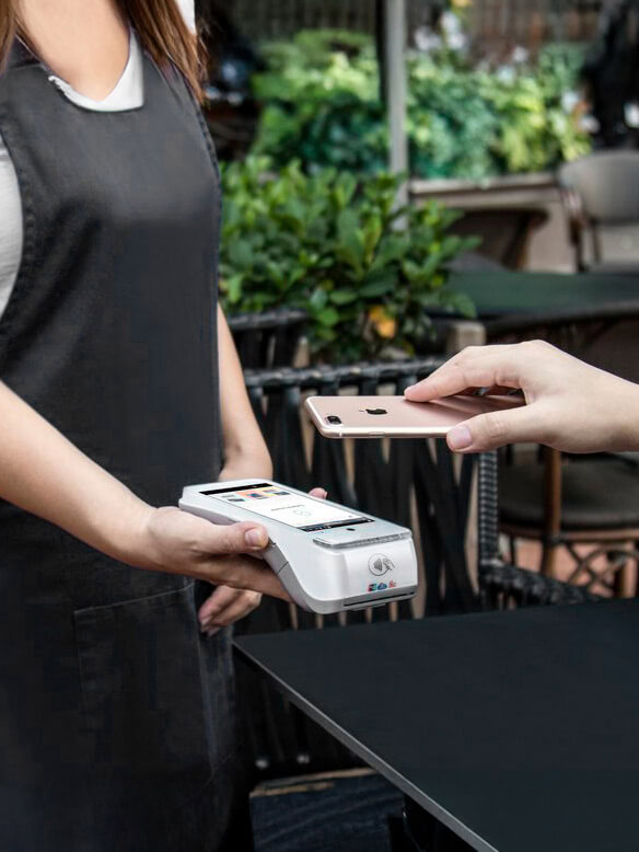 Wireless payment terminal. Let customers pay wirelessly, either via Wi-Fi or SIM card. For seamless use, we offer integrated wireless payment terminals with pay@table options and synchronization of reconciliation directly with POS.